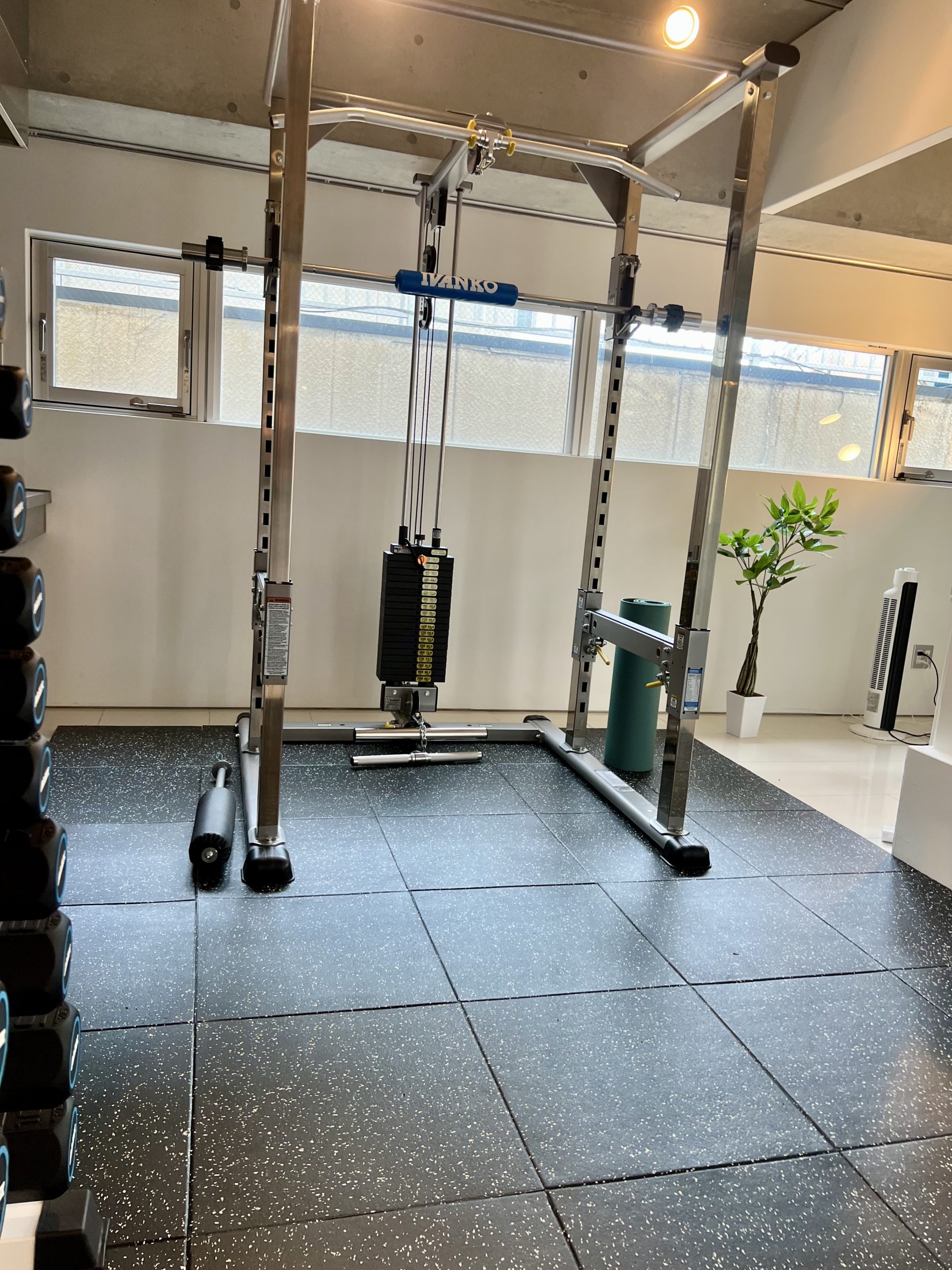 一つ一つの備品がデザイナーズなもので、引き締まったジムとなっております。