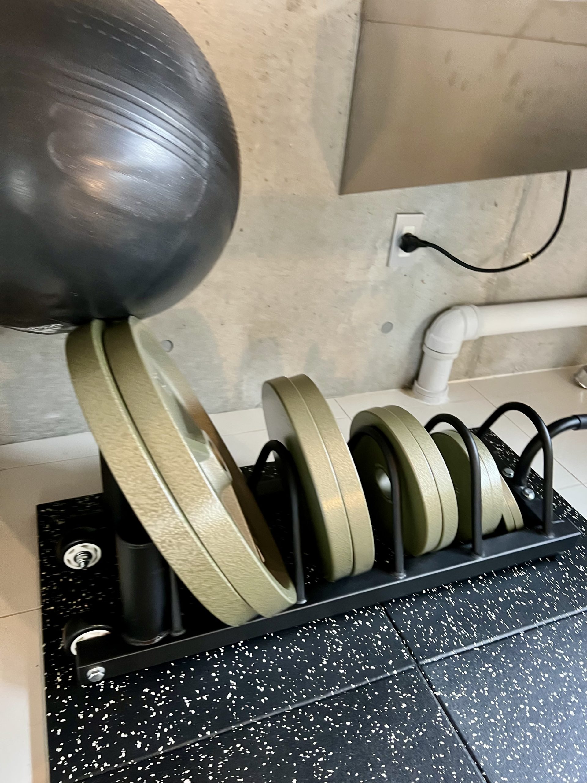 パーソナルジムでは、多角形のプレートもありますが、安全面から円形プレートが主流です。デッドリフトなどでは、多角形だと角が床に先に当たり、不安定になって背骨や関節を痛める恐れがあります。